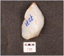 | Description / विवरण | Fragment of a blade on core with nine blade scars on one surface, cortex on othe surface and broken from both the ends. |