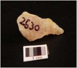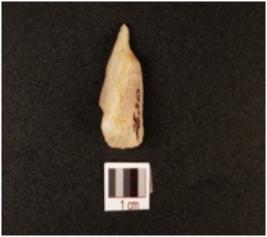 | Description / विवरण | Borer with one end pointed, chippings visible on surface, other end broad flakings near th pointed end visible. |