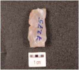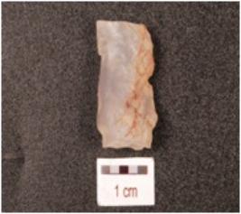 | Description / विवरण | A blade on core made of a chalcedony with four blade scars on surface, cortex on one side, prepared platform and prominent bulb on ventral side. |