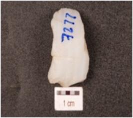 | Description / विवरण | A blade on core made of chalcedony, nine blade scars on surface. |