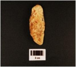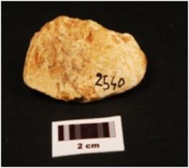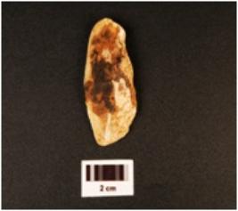 | Description / विवरण | Flake with a weathered surface, striking platform and positive bulb also weathered working edge also blunt small chippings visible on surface. |