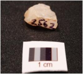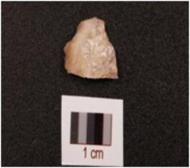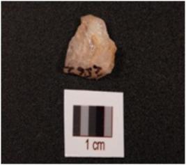 | Description / विवरण | A flake made on quartz with uneven surface and cortex on the dorsal side, prepared platform and irregular edges. |