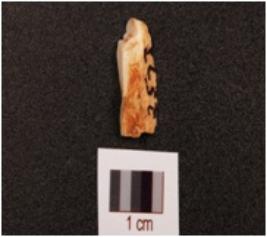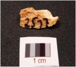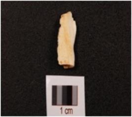 | Description / विवरण | Fragment of a chert blade with natural lines and cortex on the surface, uneven surface broken at one end. |