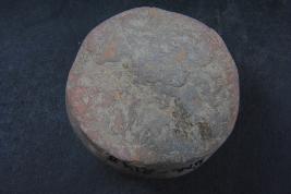 | Description / विवरण | It is a ball made of terracotta was found in Banawali. It is well fired and color is red. Its half part is missing. It has some cut marks and white patches on its surface. It is a hand made pottery. It may be used for games or a weight. |