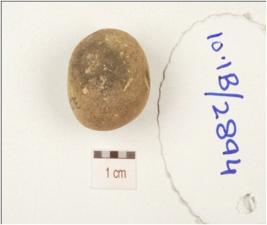 | Description / विवरण | A terracotta handmade sling ball and circular cross section. |