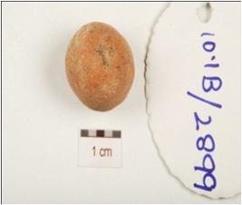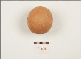 | Description / विवरण | A terracotta handmade sling ball and circular cross section. |