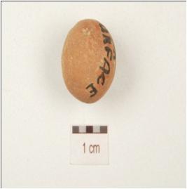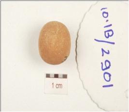 | Description / विवरण | A terracotta handmade sling ball and circular cross section. |