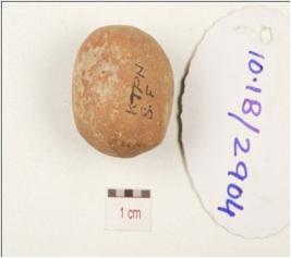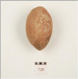 | Description / विवरण | A terracotta handmade sling ball. |