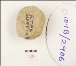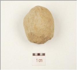 | Description / विवरण | A tiny terracotta handmade sling ball uneven and slightly broken surface. |