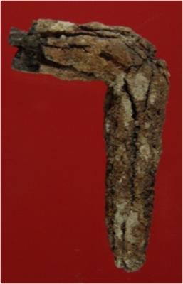 | Description / विवरण | Trench XAT 19, Qdt 1, layer 3, depth 135 cm It is an iron nail. One side is bent and it is badly deformed and corroded. It has a point. |