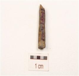 | Description / विवरण | A fragment of point made on bone, upper part broken and slightly missing working tip. |