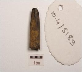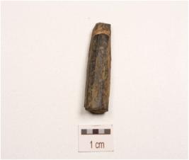 | Description / विवरण | Fragment of bone point, circular cross section, smooth and polished surface, charred. |