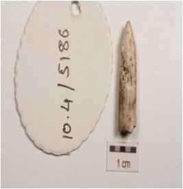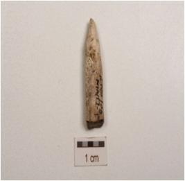 | Description / विवरण | Bone point, partly broken, sharp pointed end, circular cross section, smooth and polished surface. |