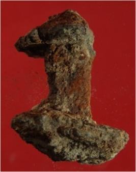 | Description / विवरण | Trench XAT 19, Qdt 1, layer 3, depth 160-180 cm It is a clamp made of iron. Two broken caps are joined with a shaft. Badly deformed and corroded. |