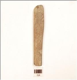 | Description / विवरण | Fragment of a rectangular shaped chisel made of chert, smooth surface and bround working edge. |