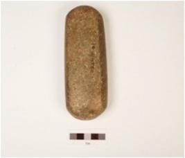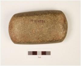 | Description / विवरण | A mace head round in shape, uneven surface, perforated and it is made on basalt. |