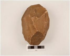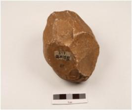 | Description / विवरण | An choping quartzite stone and flake scars on surface. |