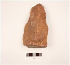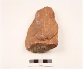 | Description / विवरण | A hand axe made on quartzite, prepared platform on distal end, another end is pointed and surface is uneven. |