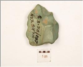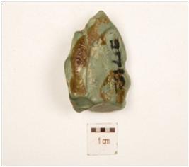 | Description / विवरण | A flake made of chert stone with flake scars. |