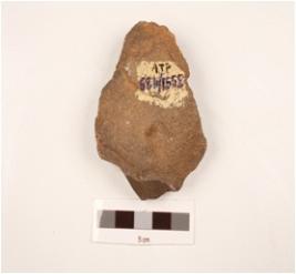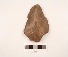 | Description / विवरण | A chopping tool made on quartzite visible cortex at butt end and flake scars on surface. |