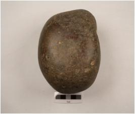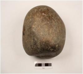 | Description / विवरण | Hammer stone made of basalt, pitting marks present on the surface, spherical cross section, well polished and smooth surface. |