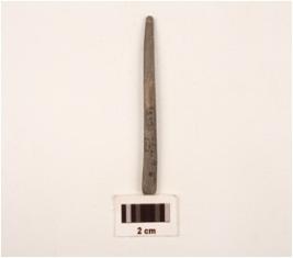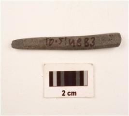 | Description / विवरण | Fragment of a point made on basalt with broken ends, polished surface and oval in section. |