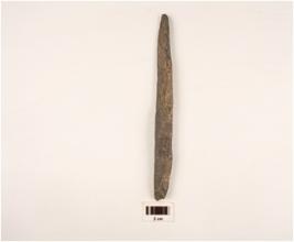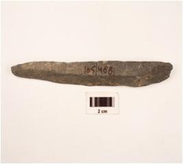 | Description / विवरण | Chisel made on basalt with partly broken surface, with ridges on it, angular end. |