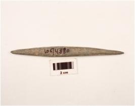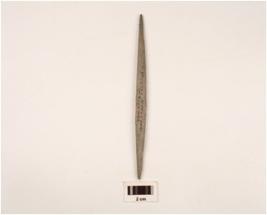| Description / विवरण | Basalt knitter with pointed ends, flat sides and round edges, polished surface. |