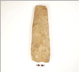 | Description / विवरण | A celt made of chert, irregular edges, uneven surface and broad working edge. |