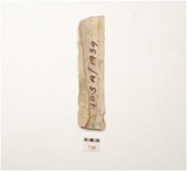 | Description / विवरण | A blade, made on chert, bulb on the ventral side, midridge on the dorsal and trapezoidal cross section. |