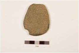 | Description / विवरण | A flake made on basalt smooth and well polished at dorsal side and ventral side is rough. |