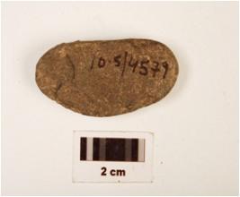 | Description / विवरण | A natural basalt pebbel with broken at one side. |
