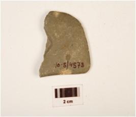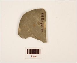 | Description / विवरण | An unfinished basalt harvester damaged at one side, perforated part is broken, well polished, smooth and flat surface. |