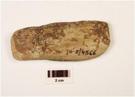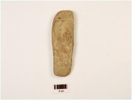 | Description / विवरण | A broken piece of stone chisel, one end is working well polished and rough surface. |