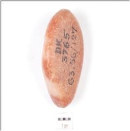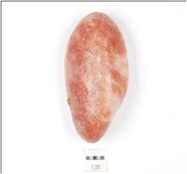 | Description / विवरण | A pebble tool stone with white bands on surface. |