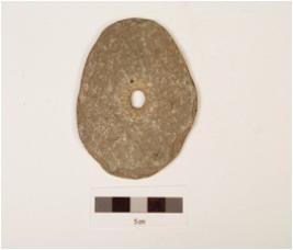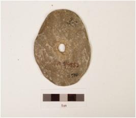 | Description / विवरण | A ring stone circular in shape, uneven edges and perforated at center. |