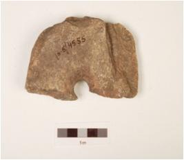 | Description / विवरण | A fragment of mace head, made on basalt uneven surface and perforation is partly remained. |