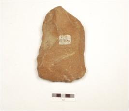| Description / विवरण | A cleaver made on quartzite, prepared platform on proximal end,flake scars on one side and use marks on working edges. |