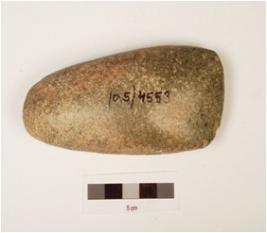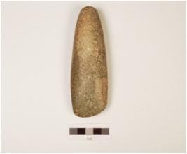 | Description / विवरण | A axe, made on basalt with round butt, one end is flat and polished surface. |