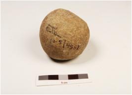 | Description / विवरण | A hammer stone made on stone, round in shape and uneven surface. |