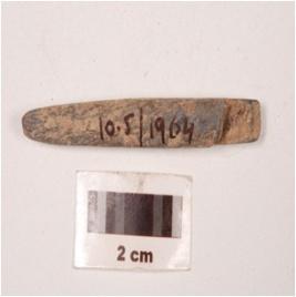 | Description / विवरण | Fragment of a bone point, rectangular in section, slightly broken both end, greyish colour, smooth surface. |