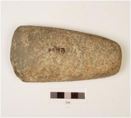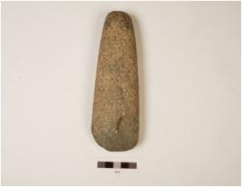 | Description / विवरण | A basalt celt, with rounded butt and bevelled edge rough surface polished along the cutting edge. |