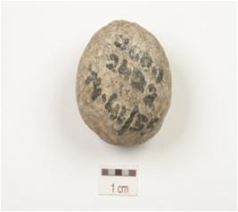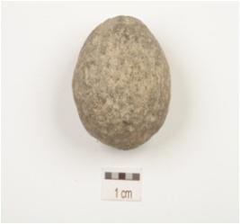 | Description / विवरण | A sling ball made on stone, circular cross section and rough surface. |