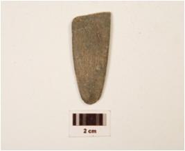 | Description / विवरण | A long basalt celt with pointed butt, bevelled edge, fully polished, chipped off surface at butt end and also at the edge. |