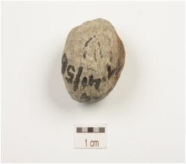 | Description / विवरण | A sling ball made on stone, circular cross section and rough surface. |