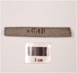 | Description / विवरण | Fragment of a point stone, slightly broken both end, oval in section, greyish colour, smooth surface. |