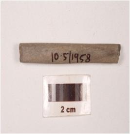 | Description / विवरण | Fragment of a point stone, slightly broken both end, circular in section, greyish colour, smooth surface. |