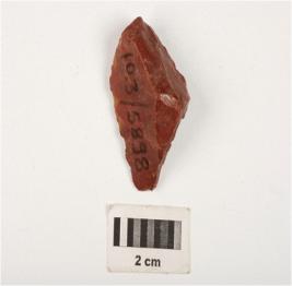| Description / विवरण | A small scraper with sharp broad working edge, slightly damaged at working edge, flake scars on surface. |