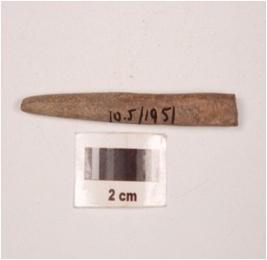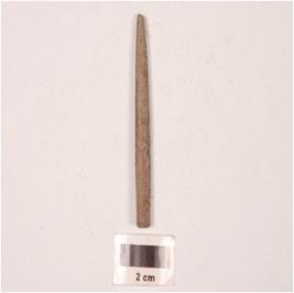 | Description / विवरण | Fragment of a slightly broken at one end, pointed broken at one end triangular in section, greyish colour, smooth surface. |