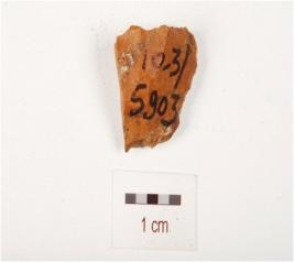 | Description / विवरण | Stone scraper with sharp working edge, flake scars marks visible on surface. |